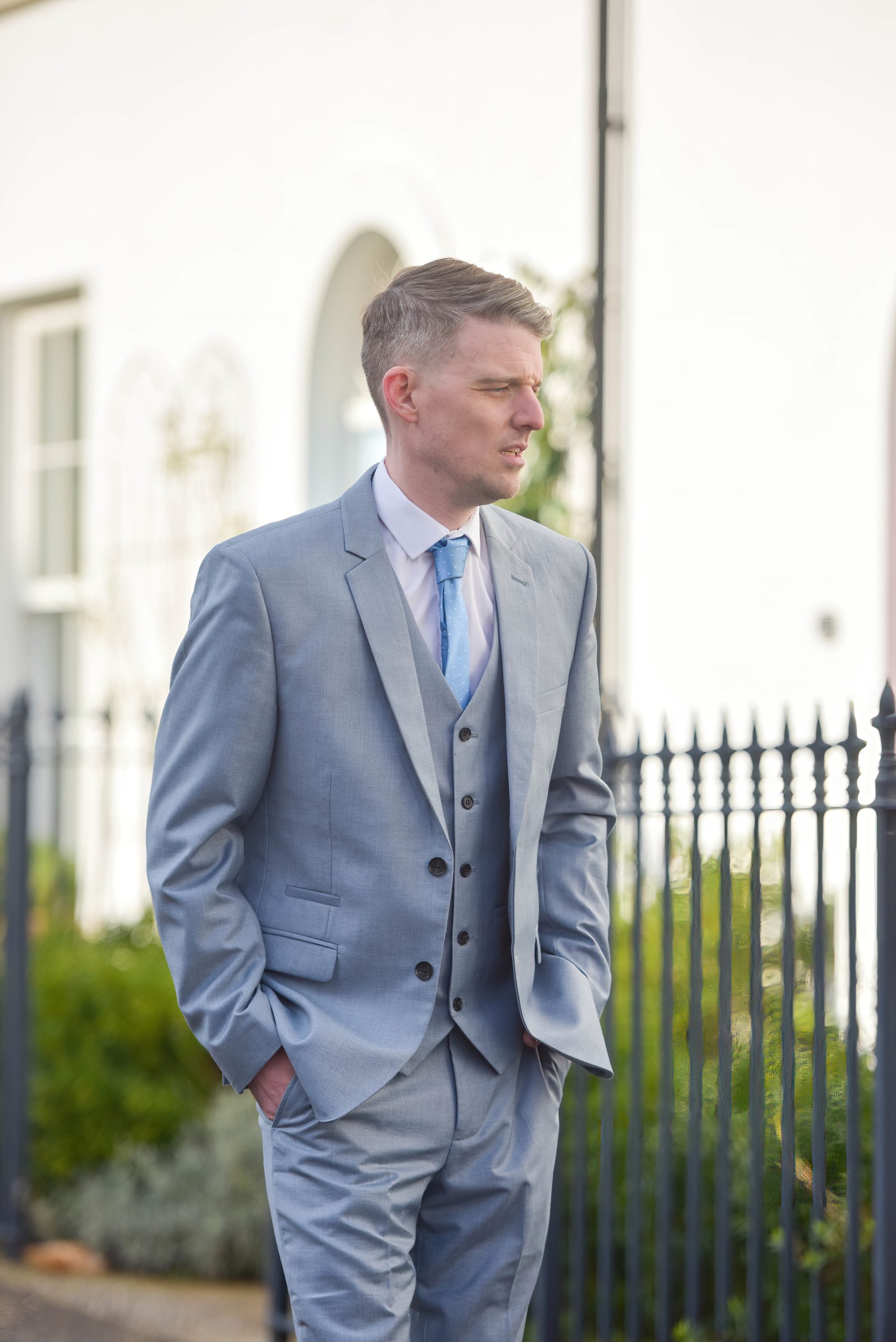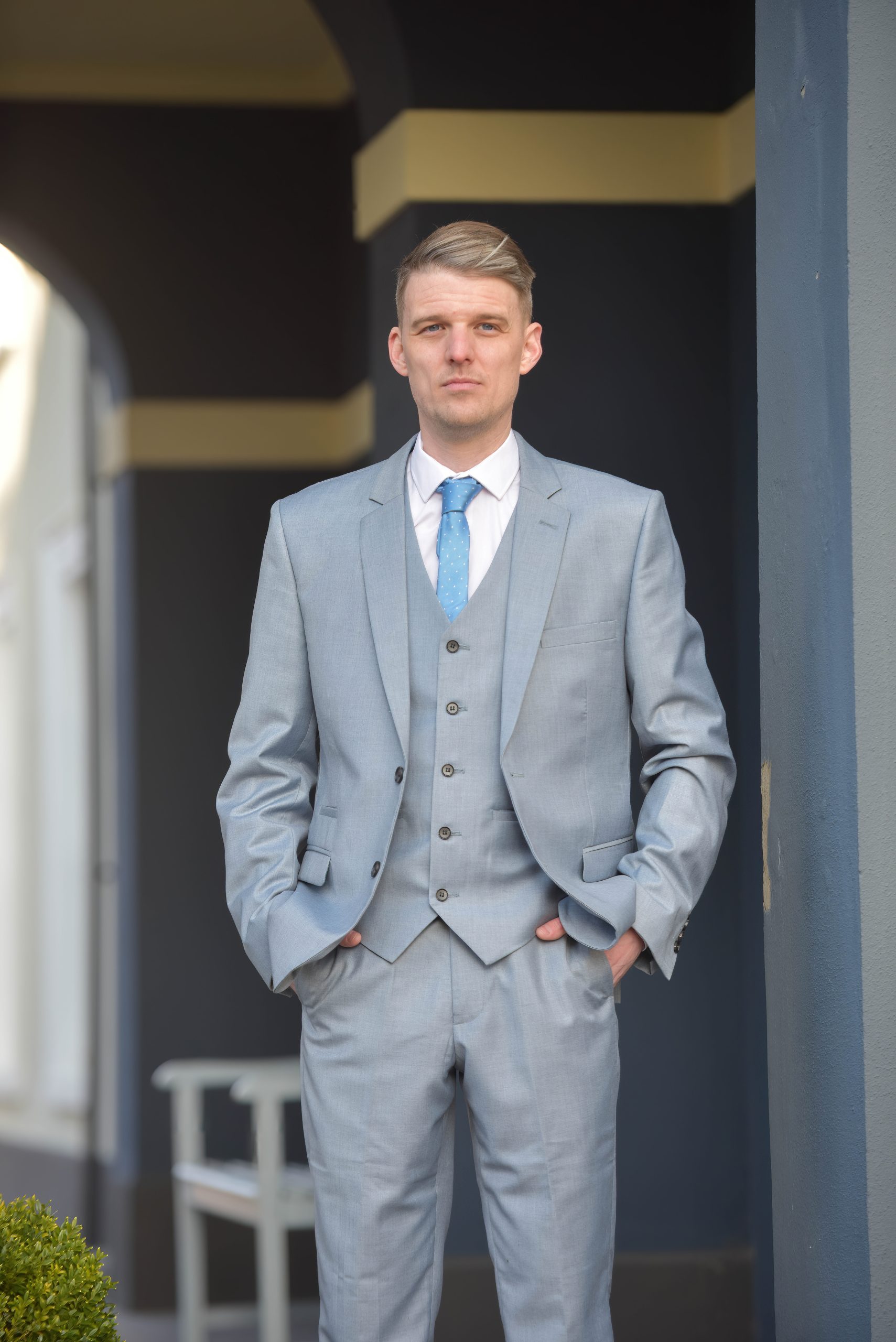 ✔ Grey Waistcoat – A refined addition for a polished three-piece look.