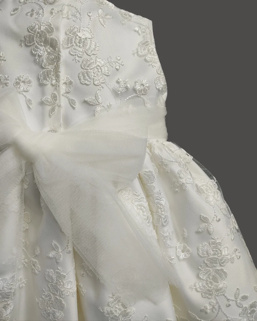 Bodice: A beautiful floral lace design on the bodice creates a soft, elegant look.
